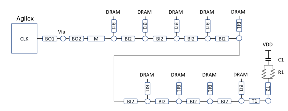 2. Figure 143 in section 6.5.6.1 of Agilex 7 EMIF User Guide shows ADDR/CMD clock terminated to VDD through R and C network.