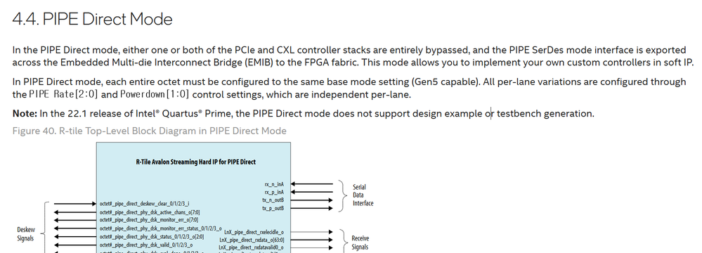 specifically: if I connect through the edge connector (to a host system), can I still operate the R-Tile in PIPE Direct mode with my soft controller, or is PIPE Direct limited to MCIO breakout only?