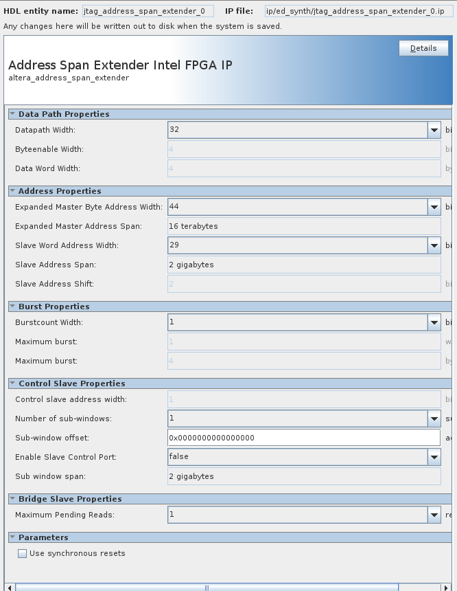 In this design, I added a JTAG path to the DDR5 using a JTAG to Avalon Master bridge -> Address Span Extender (to extend the avalon address range from 32-bit to 44-bit) -> NoC initiator (I've tried reusing the same initiator as the test engine and also two separate initiators) -> EMIF. I am able to successfully read and write addresses 0x0000 - 0x7FFF using system-console over JTAG. However, whenever I try beyond that address range (0x8000 and up) I read only 0's and I've noticed that the rresp signal coming from the NoC initiator shows 0x2 (SLVERR). This only happens with the JTAG path, the test engine still appears to read/write the full DDR range. I've tried adjusting the security settings in Platform Designer, I've tried putting a AXI bridge in-between the address span extender and the NoC initiator, multiple NoC initiators, and the bit-width of these intitiators.