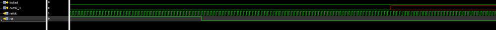 You can increase the simulation timeframe to see if the outclock signal starts to toggle.