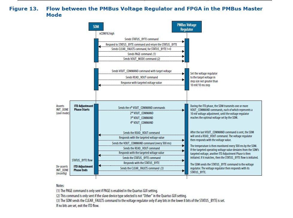 The interface between Agilex and voltage regulator is glueless and SDM manage the interface as below