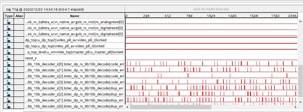 The video signal goes to altera_xcvr_native_av and when RX is out of lock we see multiple retries on the DP AUX channel.