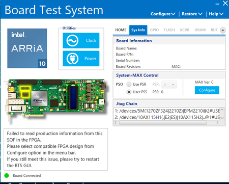 Thanks for the detailed info. Based on your description, it looks like the flash contents may be corrupted, which is causing the boot failure (D16 red LED). Since the Board Test System isn’t recognizing the board correctly, we recommend using the Quartus Prime Programmer Pro to load the factory recovery (.jic) file.