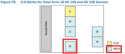 In the Arria 10 device, the pins with the timing failures are mapped to I/O bank 2A, which is an LVDS I/O bank.: