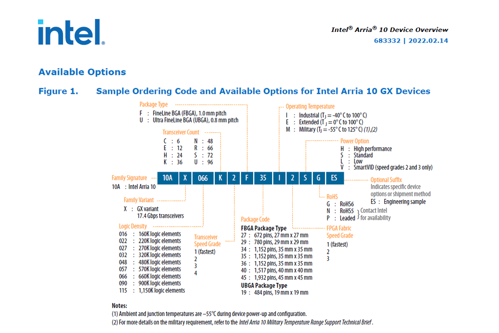 I would like to understand the "optional suffix" mentioned in the Arria 10 Device Overview.