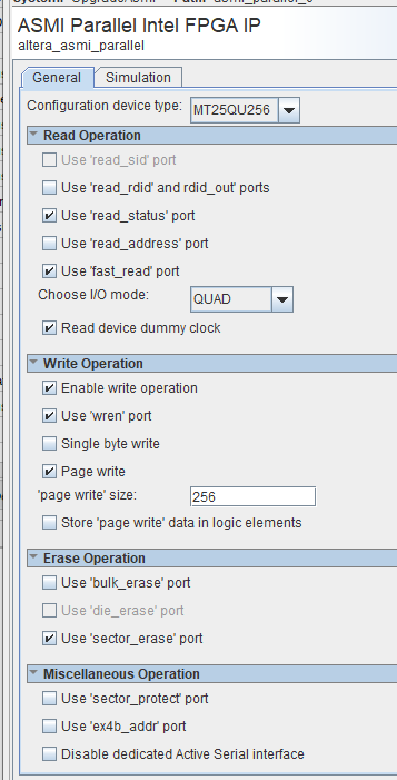 using an Arria 10, MT25QU256 flash and ASMI