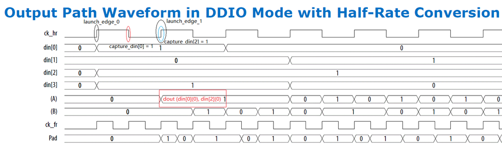 And for output hr_ddio, I found that for the din (din[0] and din[2], din[1] and din[3]) generated current rising edge of hr_ck_out, it will output at hr_ddio_dout at the next rising edge and falling edge of hr_ck_out. And from the timing analysis result, there's no timing violation. And I didn't found any timing path from din to hr_ddio_dout and only exist the path from din to dr_ddio_datain*. So I don't think there necessary need to set all output ddio timing constrain, right?