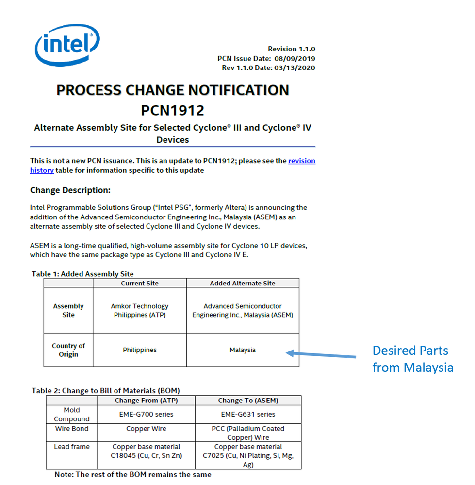 I am looking for the Cyclon 3 FPGA Ep3c10e144c7n being manufactured in Malaysia,