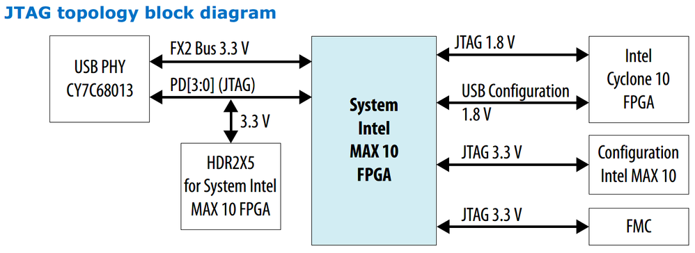 Here is part of the Cyclone 10 GX Development Kit diagram.
