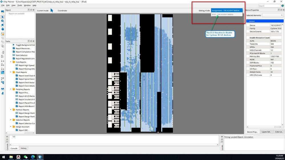 Can we apply operating for Cyclone 10 GX devices like ECO? I know that Cyclone 10 GX serial devices don't support ECO operation in Quartus Prime Pro. Does Intel provide any other methods for user to operate or modify or adjust properties?
