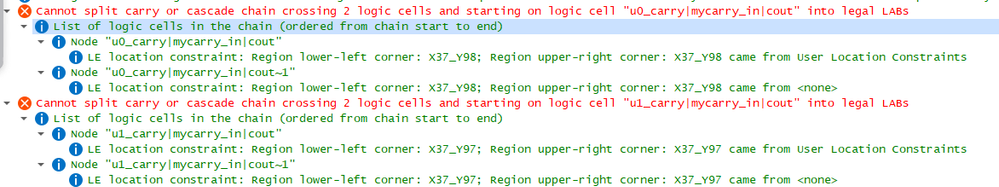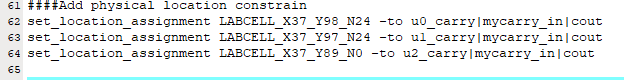I have added physical location constrains for these 3 carryin cells and make them closed to those 3 I/O pins.