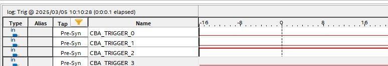 As figure 3 showing, SignalTap II was used to detect these 4 ports signal status. When they are unplugged, only port 2 (CBA_TRIGGER_2) keeps high level. There are many narrow pulses also appear in port 1, even figure 3 doesn't show them. The issue on port 1 and port 2 will affect them to transfer real signals. For port 1, the noise narrow pulse will be merged into useful real pulses. For port 2, as figure 4 indicates, many unwanted noise pulses appear when driver was plugged.