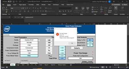 1 If you are using Office 365, please download this power estimator to do power estimation on Intel Cyclone 10 LP devices.