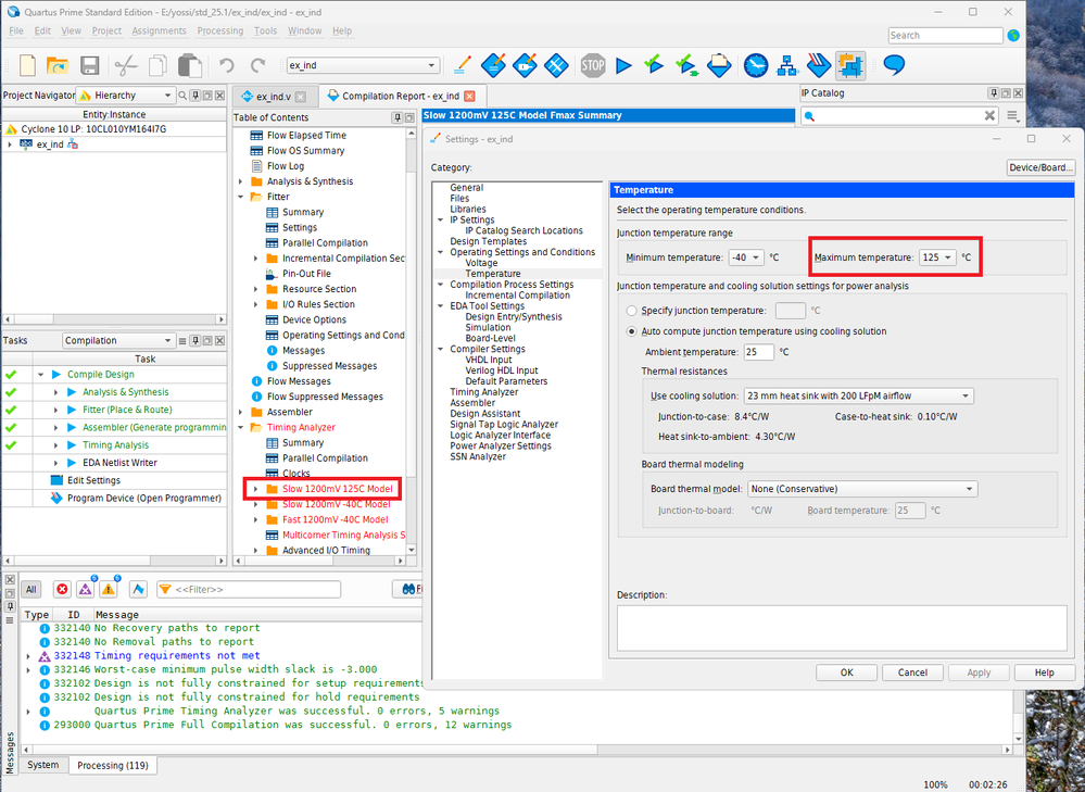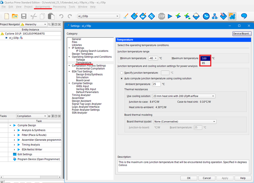 I checked with the latest Quartus Standard Edition v25.1, but I could not set it to +125degC.
