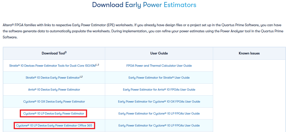 Regarding the error in downloading the EPE file, we will work to update the links. As a workaround, you can go to docs.altera.com and search for the file name or asset ID. You can find the asset ID from the link path.