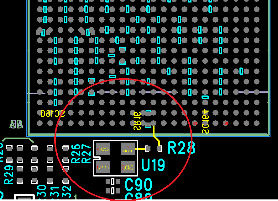 We have an oscillator driving clock input through a 22 ohm resistor. The trace is very very short.