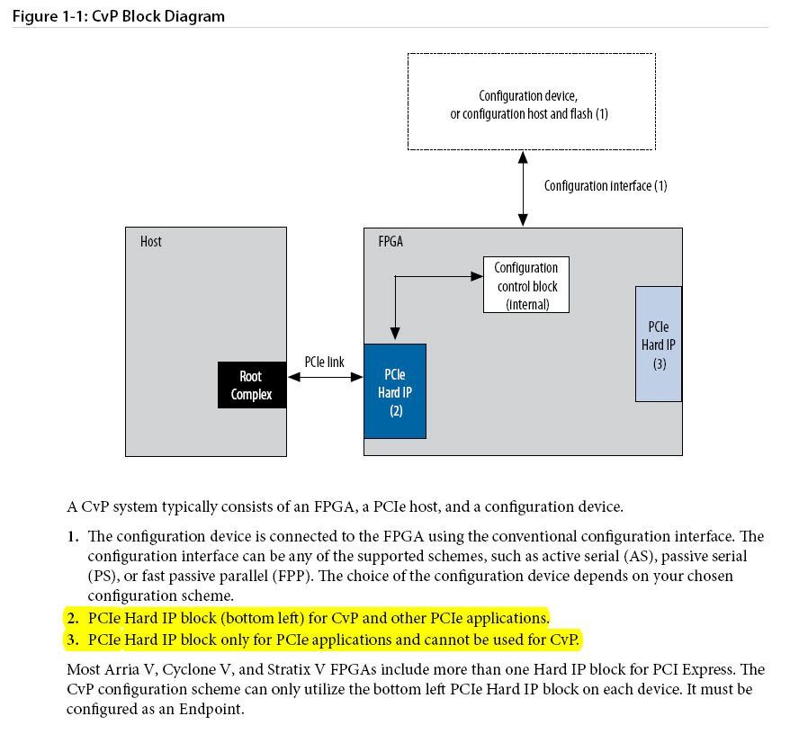 3. PCIe Hard IP block only for PCIe applications and cannot be used for CvP.