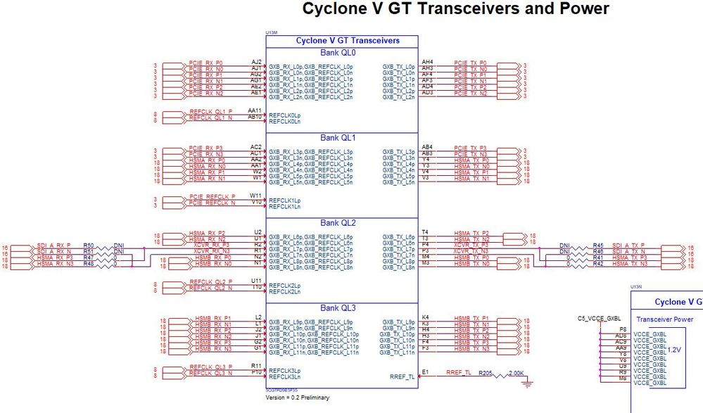 Cyclone V (5CGTFD9) 4X PCIe Connections for Data Lines and RefClk