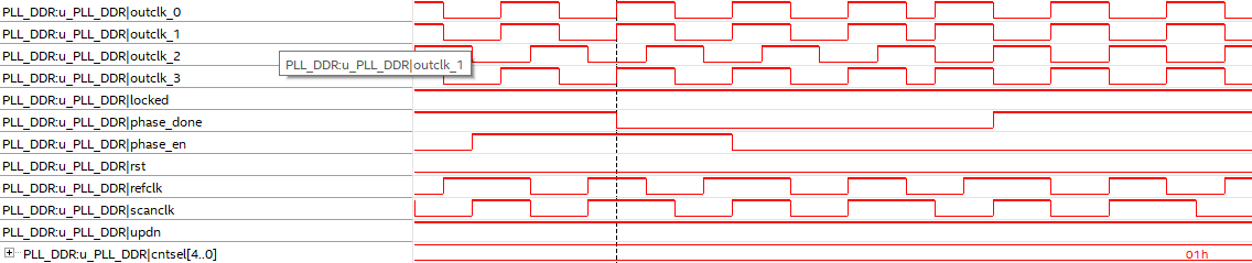 4 are at 56.25MHz and a fifth is at 225MHz that is used to sample the other outputs to confirm any phase shift in Signal Tap.