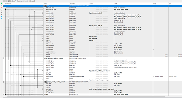 I am having issues meeting timing when bringing an HPS EMAC into the fabric using a Cyclone V device. My project is connected as shown below where I am using the hps_interface_splitter and gmii_to_rgmii_adaptor cores.