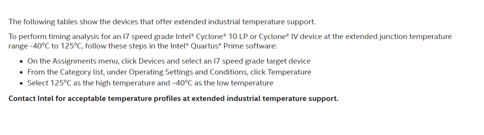 At this page(https://www.intel.com/content/www/us/en/products/programmable/temperature.html), it is described that how to perform timing analysis for an I7 speed grade at the extended junction temperature range -40°C to 125°C". But I did not find the related setting on Quartus Prime lite and standard version(21.1).