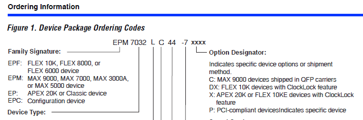 To register NSN with "EPM7032STI44-7N", we need a exact data sheet. Even though we have "EPM7032STI44-7 XXX" data sheet, we cannot find in any information about the codes for <Option Designator>, "N". We have already checked the situation that the assembly company ordered "EPM7032STI44-7N". So, if you have the updated data sheet, please send us.