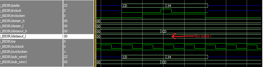 Here are my requirements: 1) Need to be able to tri-state the line to implement bi-directional 2) Need to output with dual-data rate, clocked from my internal clock 3) Need to input dual-data rate, clocked from the DDR's DQS (data strobe). It seemed like the ALTDDIO_BIDIR was going to work, as it has an inclock, outclock, oe, and inclocken (can ignore DQS when in non-read states), but the simulation shows that I was only capturing input data on the rising edge of DQS...missing the data on the falling edge. http://www.alteraforum.com/forum/attachment.php?attachmentid=12962&stc=1 What is the correct set of components to perform this?