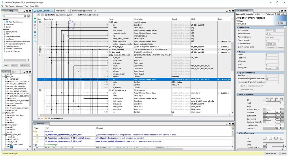 But when I connect both the Nios and the custom IP to the MM-slave interface, the "waitrequest_n" signal is '1' only for few time (and sometimes is stuck to '0'), even if the Nios is not communicating with the slave peripheral and the bus is busy only for the communication between my IP and SDRAM controller.