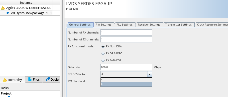 I have a design that includes a Deserializer - originally designed for a Cyclone III device - that I want to import to an Agilex 3 device. The deserialization factor in my design is 10 see attached image. How do I import this Deserializer to the Agilex 3 device. Agilex 3 as far as I understand does not support deserialization factors of 10 (x1, x2, x4 to x8) supported. Do I understand the Agilex datasheet correctly - it does not allow deserialization factor of 10. I do not at this time have access to Quartus Prime and I therefore cannot see in software what options are available in the chip.