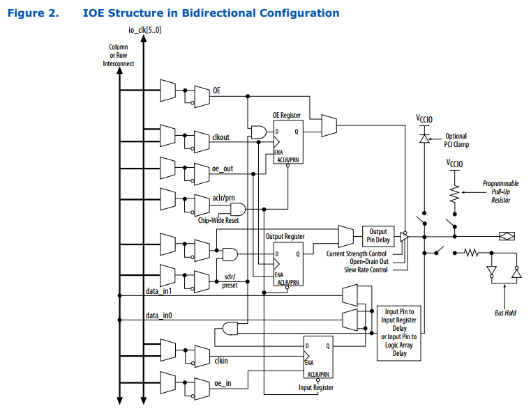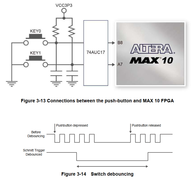 It is obviously a problem with the logic levels or, more specifically, interpretation of the input voltage, but I can't get what exactly. I have studied the MAX10 GPIO User Guide hoping to find there exact description of how the IO standard handled at hardware level, but there is little information there. Just this diagram: