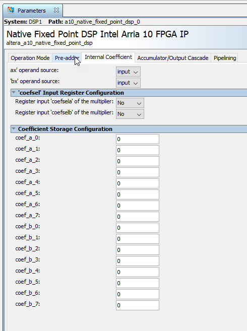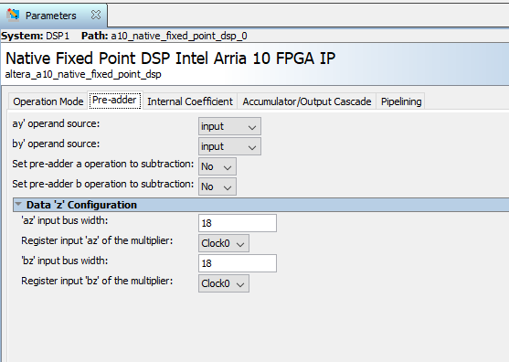 DSP: chainout = ( (ay+az)*ax) + ( (by+bz)*bx) + chainin