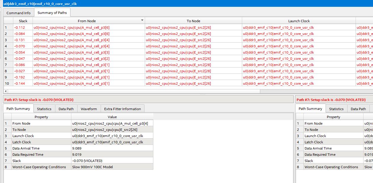 If i use the 800Mhz clock , How can i clock my logic and NIOS with less then quarter of 800Mhz (less of 200Mhz)- this in order to meet timing and relax paths seen in attached picture-1?