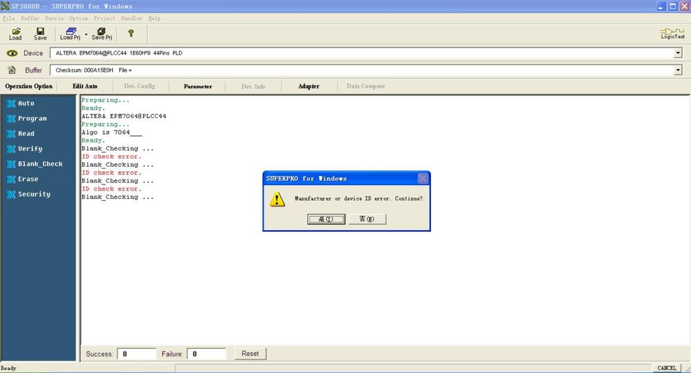Yes, we used uartus programmer to program the device, and it shows the part number is EPM7064S, not EPM7064LI44-15.