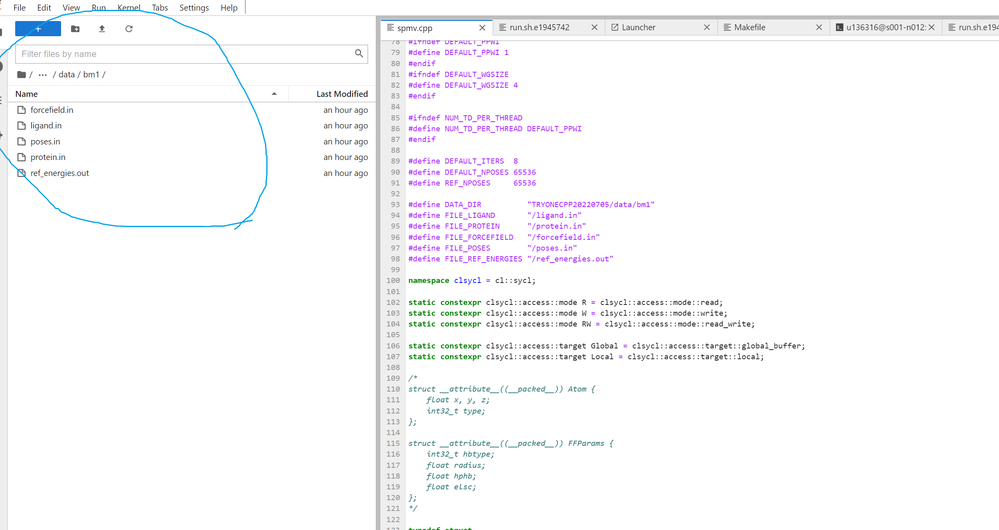 Then, I wanna run it on jupyter cause I have to try cpu, gup and fpga, So I change the path define to #define DATA_DIR "TRYONECPP20220705/data/bm1". It will run fail when I perform it by qsub as below