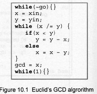 From page 278 there it is shown how to correctly implement such algorithms on the FPGA using the example of searching for the root and Euclidean GCD. Figures 1 and 2 are not synthesized code of these algorithms.