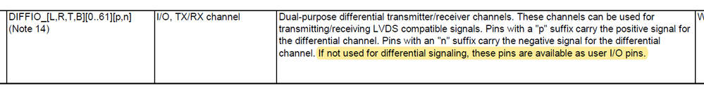 - from differential IO guide, it can be assigned as user IO.