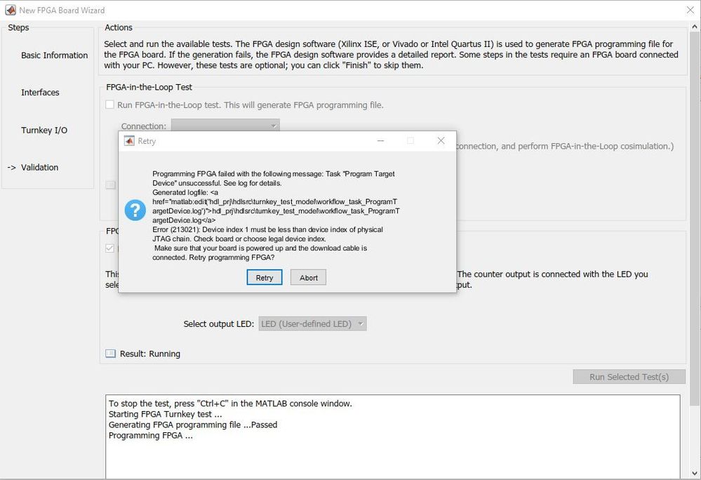 I am using JTAG communication between fpga and matlab. At the beginning I applied the following respectively.