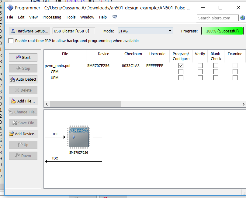 I'm generating the compilation/programming file very well and the device is programmed via usb blaster