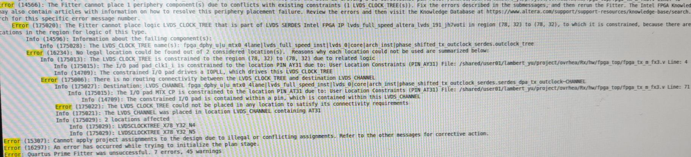When I compiled the design, there's fitter error Error(14566), Error (175006).
