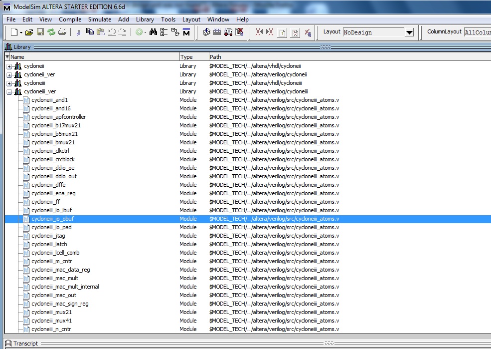 --- Quote Start --- Error: (vsim-3033) ./submodules/q_sys_altmemddr_0_phy_alt_mem_phy.v(2925): Instantiation of 'cycloneiii_io_obuf' failed. The design unit was not found. How to add the path so that Modelsim can find the cycloneiii_io_obuf --- Quote End --- That sounds like a Cyclone III low-level component. Usually those types of things are in quartus/eda/sim_lib/cycloneiii_atoms.v, which is pre-compiled for Modelsim-ASE. However, I just searched the sim_lib/ folder and could not find that component (11.1sp1 installation). If you can find where that component is located, then you can add the folder with the vlog +incdir+ option (see vlog -help). Cheers, Dave - Altera_Forum