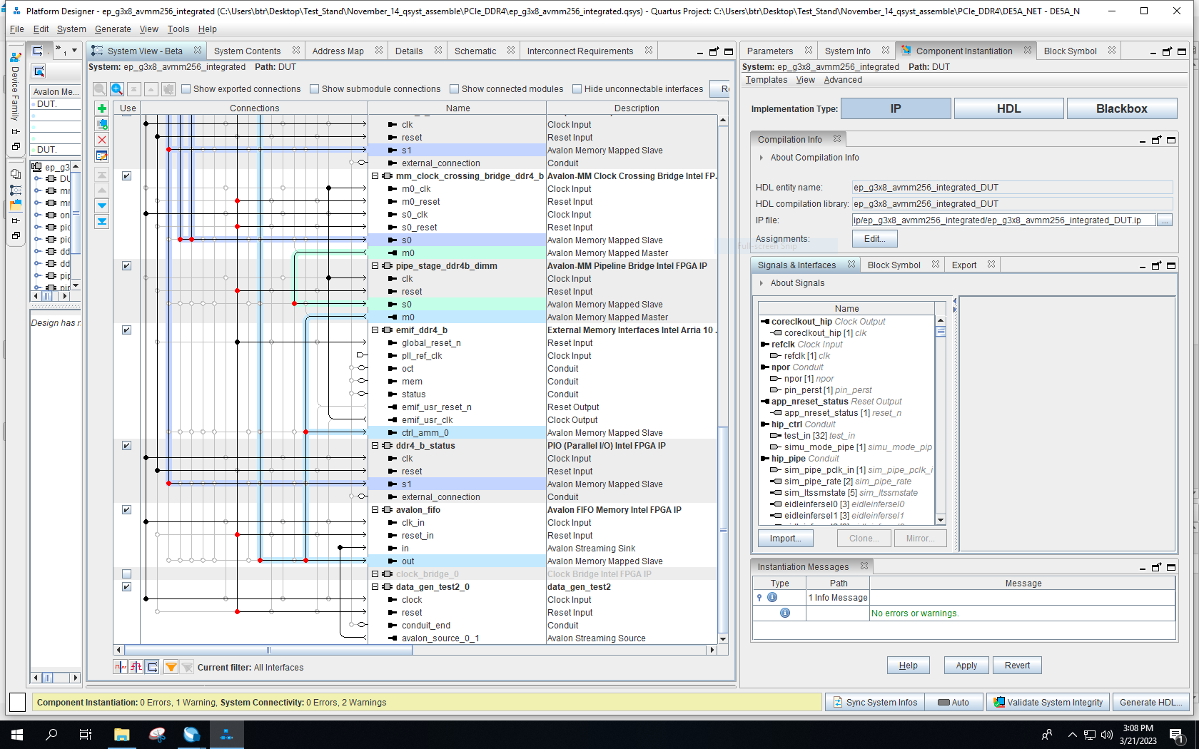 I have a modified version of PCIe DMA transfer example design mentioned in the Chapter 7 of attached user manual (I added a custom generated data generator IP and an Avalon FIFO Memory Intel IP to the existing DMA transfer example design {Platform designer screenshot is attached as DMA_modified_part1.PNG and DMA_modified_part2.PNG}) .