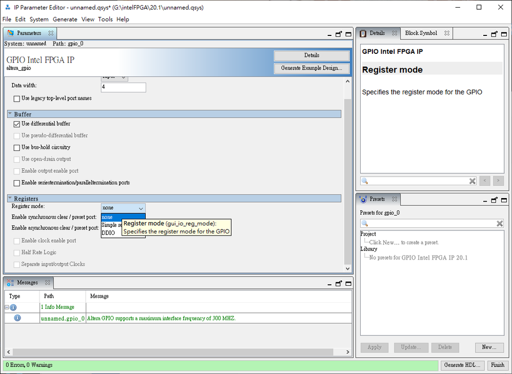 So is it right that I can use the DDIO registers mode in the Intel GPIO IP?