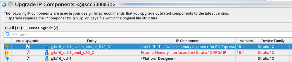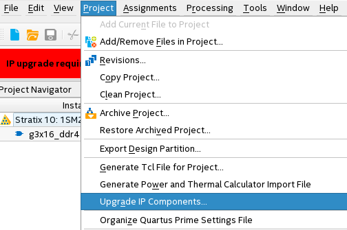 1) To upgrade a design to newer version, open the Quartus project, go to Project --> Upgrade IP Components.