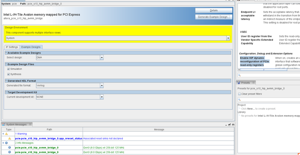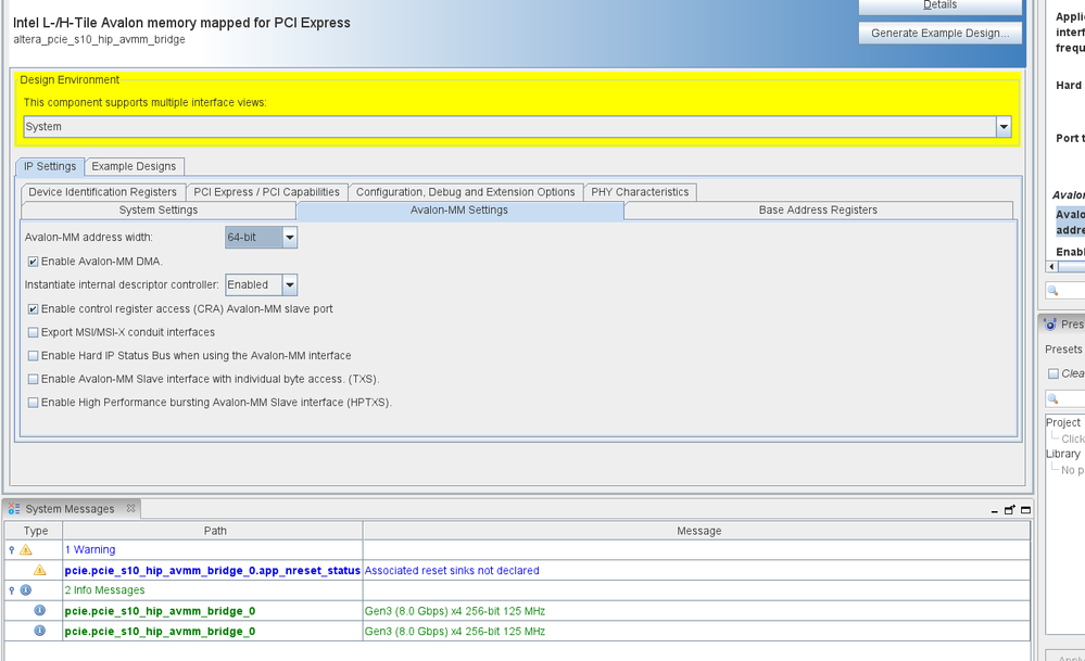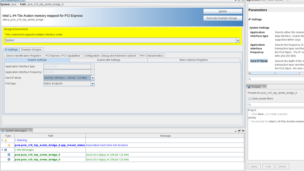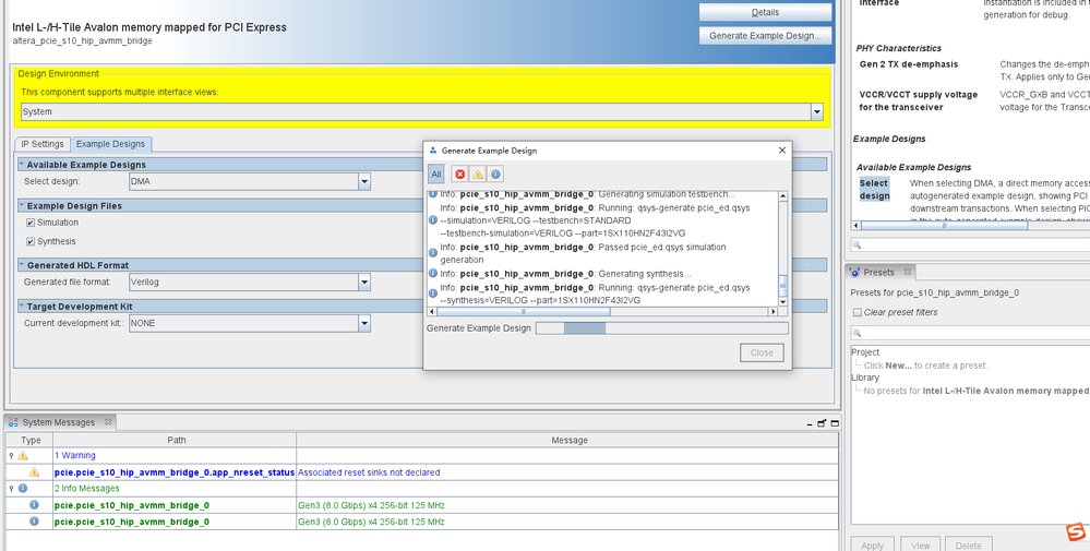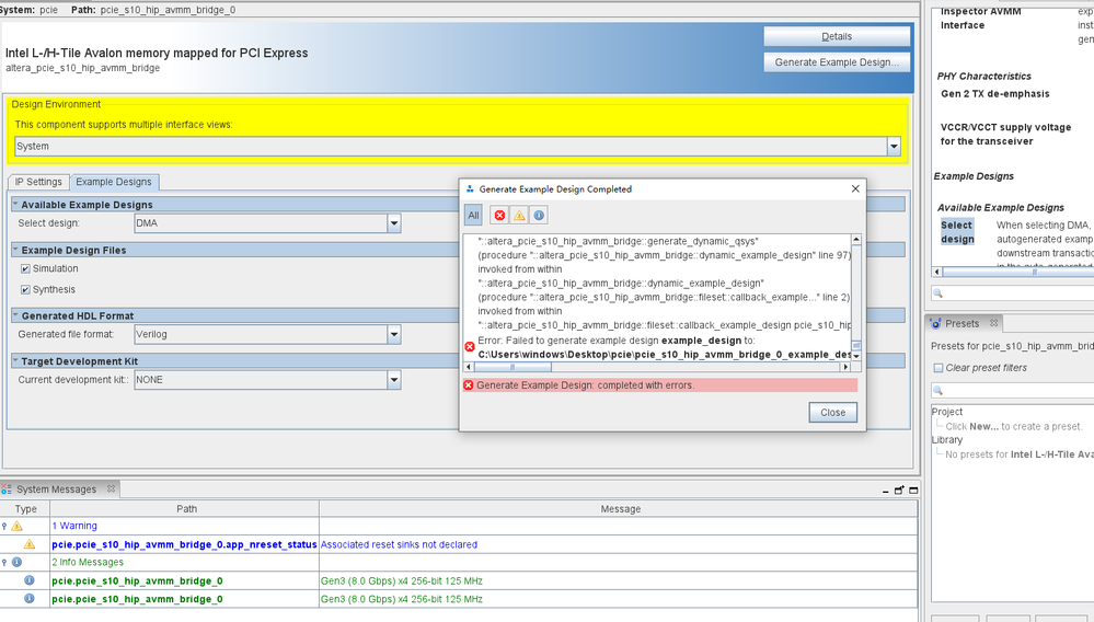 Why the reply button is always gray?I cannot reply, I am sorry I have to ask the question again. Quartus version is (Quartus Prime Pro 22.3), I created an empty project, then created pcie.ip configured and generated example design. I have used this procedure to generate example design of other IP cores before