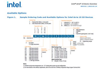 Trying to order an Arria 10 OPN, and would like to understand the ordering info.