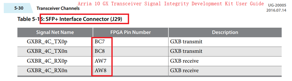 2) But from the schematics of " A10 GX Transceiver Signal Integartion Board" and its user guide, the SFP+ PIN is obvious diferrent :