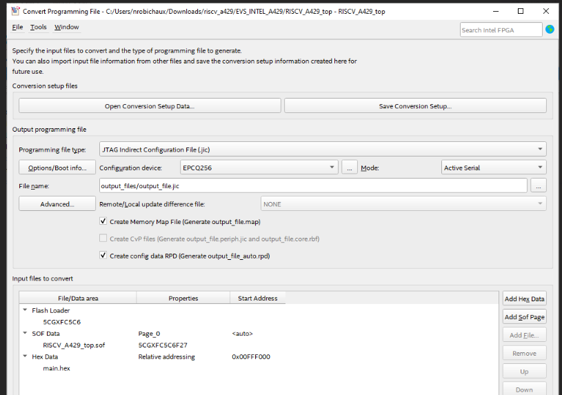 We are adding an Intel hex image of our embedded RISCV processor's SW into the programming file converter to generate our flash programming JIC file.