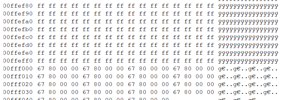 When we look at the output RPD file, we only see the first line of our hex file , repeated several times, and that is all