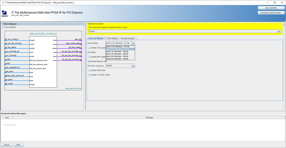 I am using Multi Channel DMA Intel® FPGA IP for PCI Express IP on a Agilex device to implement a x16 PCIe EndPoint. Due to some problems I want to change the advertised speed to Gen2 form Gen3. IP parameters does not allow me to do so. Is there a way to do so ?
