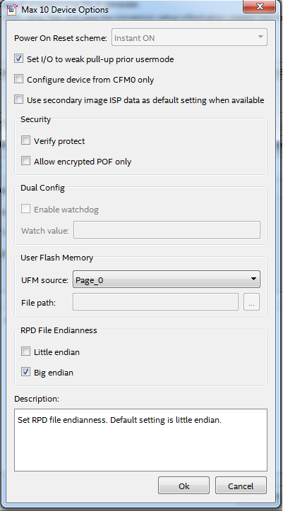The first sof file - the bootloader project, the second one - the main project. At the same time I generate rpd files. From version 16 Quartus generates 2 separate rpd files - for CFM0 and CFM1 sections.